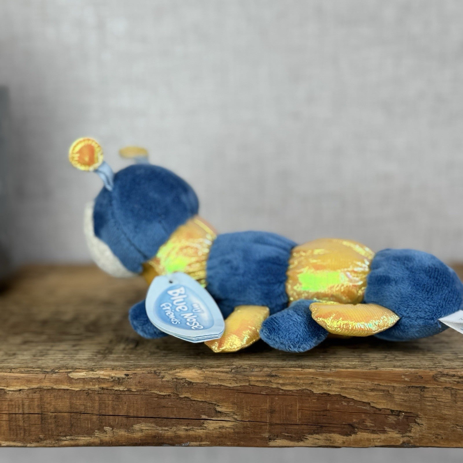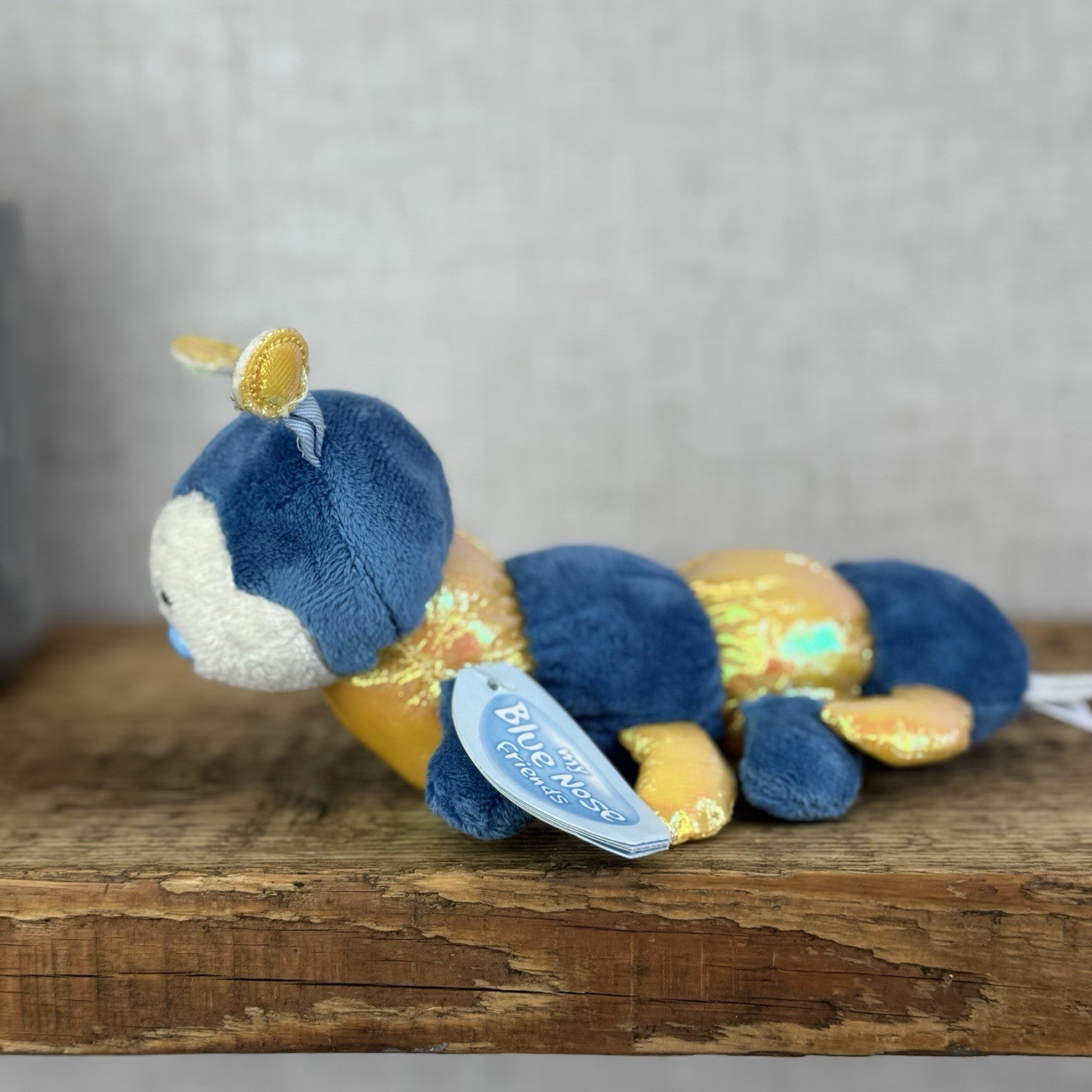 Blue Nose Friends Ramble #100 - Mini Blue/Yellow Striped Centipede Soft Toy 5"
