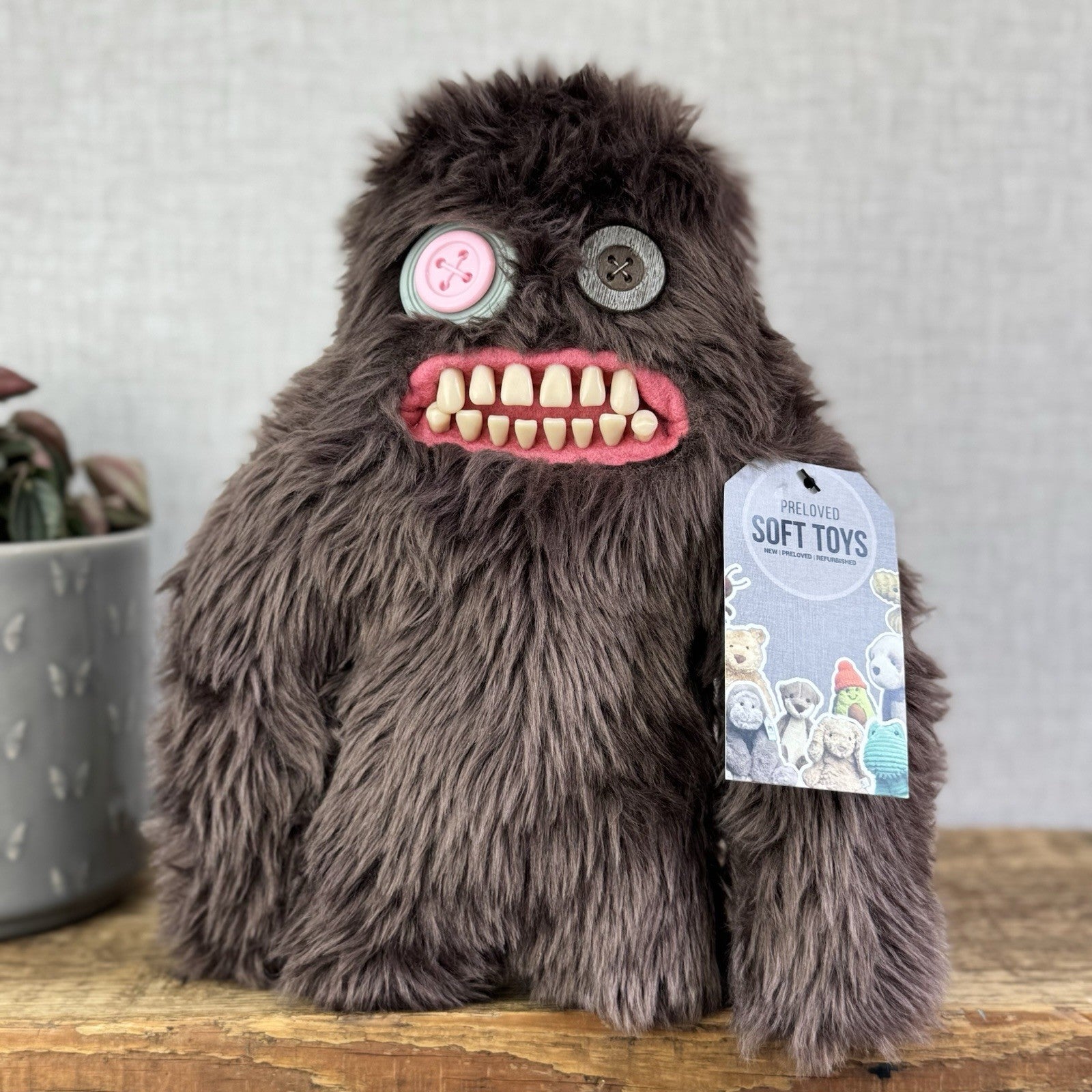 Fuggler Funny Ugly Monster Sashquoosh Rare Retired Button Eyes Brown Fluffy