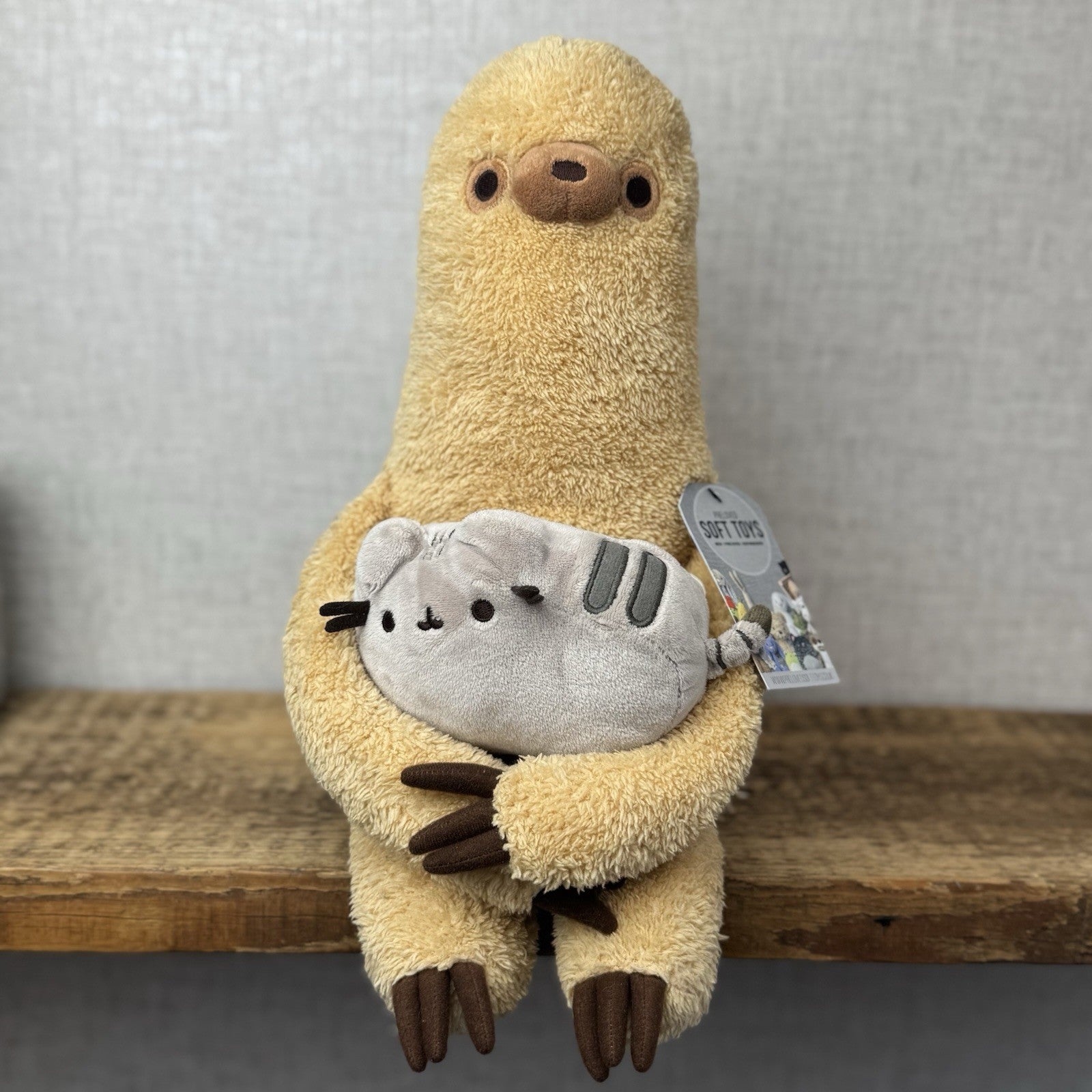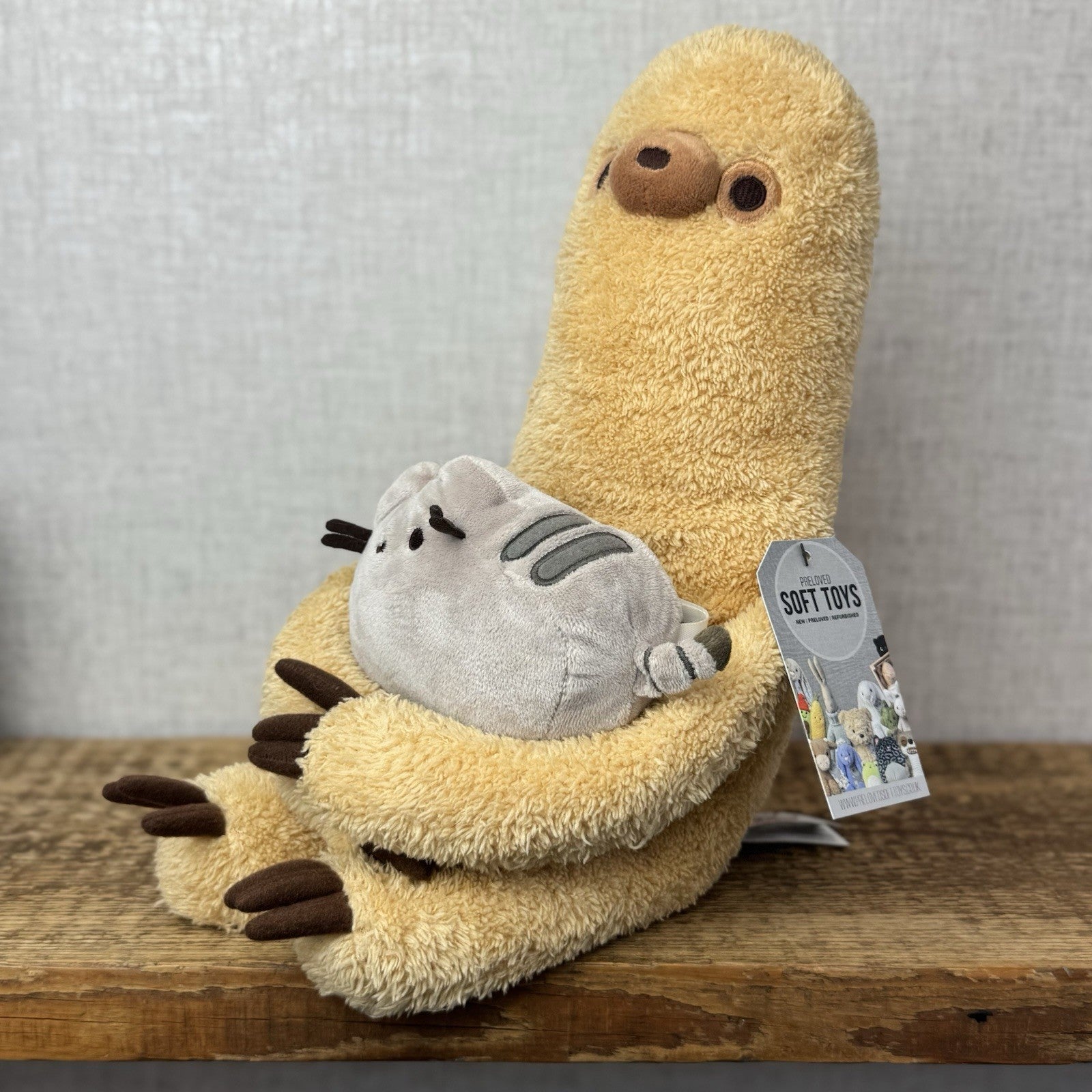Gund Pusheen Cat - Pusheen With Sloth - Large Sloth Gund Plush Retired 16"