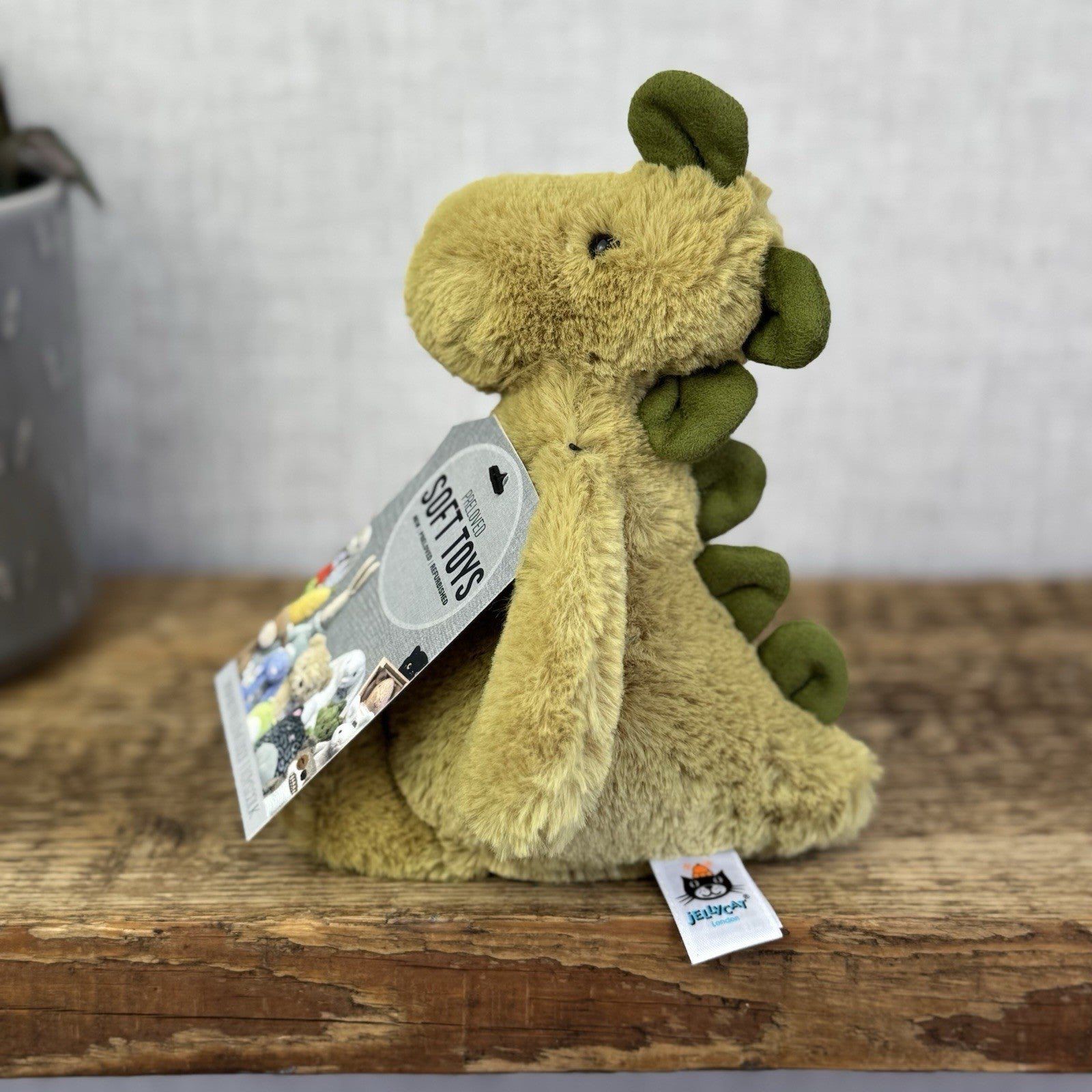 Jellycat Small Bashful Dinosaur - Light Olive Green Dinosaur Beanie Plush 8"